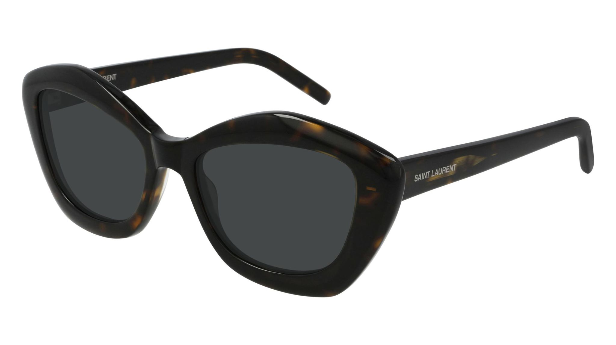AN HYPER FEMININE STYLE, A STRONG STATEMENT CELEBRATING WOMAN’S POWER AND HER OWN SENSE OF SELF. A BOLD ACETATE CONSTRUCTION HIGHLIGHTED BY TWO PECULIAR ACCENTS ON THE TOP OF THE FRONT. THE TEMPLES ARE ENRICHED WITH THE SAINT LAURENT LASERED LOGO.